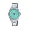 Crafted with a sleek stainless steel case and bracelet, it features a refreshing aqua dial that brings a modern edge to a timeless silhouette. Complete with minimalist indices, a date display at 3 o’clock, and water resistance up to 50 meters, this watch balances elegance with everyday functionality. Perfect for workdays, casual outings, or evening gatherings, it’s a versatile piece that elevates any ensemble.