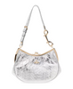 Introducing the Charm Frame Shoulder Bag by Vivienne Westwood, a perfect blend of elegance and modernity with its luxurious silver leather and unique crescent shape. Key attributes: Silver | Gray | Leather | Adjustable shoulder strap | Rounded crescent shape | Gold logo embellishment | Ball clasp closure | Dimensions & fit: Height: 17cm | Width: 22cm |