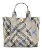Burberry Check Motif Mini Tote Bag is a compact jacquard-knit tote designed for everyday carry. It combines a classic check motif with practical features like an internal zip pocket and an adjustable, removable shoulder strap. Key attributes: Multicolor | Ecru | Jacquard knit | Snap closure | Two fabric handles | Internal zippered pocket | Adjustable and removable fabric shoulder strap | Unlined | Check motif | Mini tote silhouette | Gold-tone metal hardware | Jacquard knit | Dimensions & fit: Width: 25 cm | Height: 22 cm | Depth: 11 cm | Strap: 96 cm | Composition & care: 47% Polyurethane | 100% Polyamide | 53% Cotton