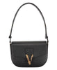 Elevate your style with the luxurious Versace Chic Leather Shoulder Bag, featuring a sophisticated push-lock closure flap adorned with a metal logo. Perfect for adding elegance to any outfit. Key attributes: Black | Calf Leather | Adjustable leather shoulder strap | One card slot | Push-lock closure flap | Gold-tone metal hardware | Dimensions & fit: Width 23 cm | Height 15 cm | Depth 5 cm | Strap length 70 cm | Composition & care: 100% Calf Leather | 100% Cotton