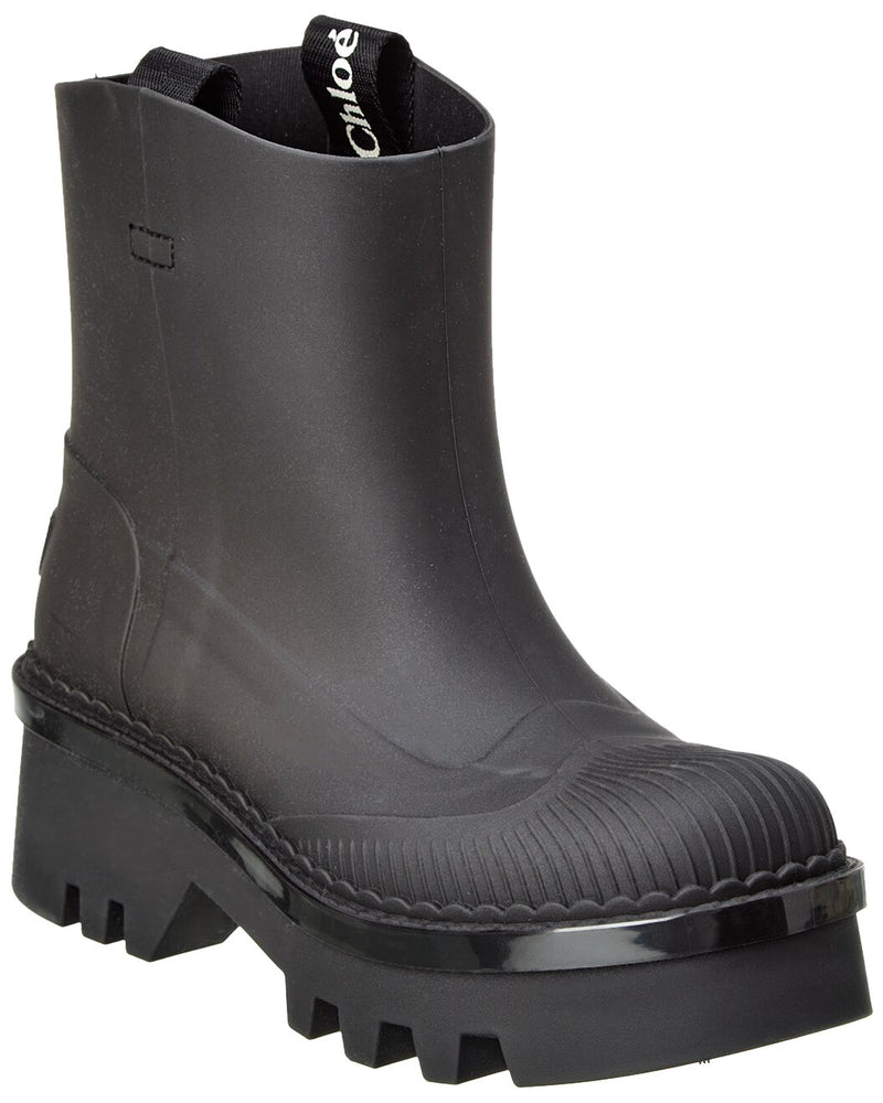 The Chloé Raina Rubber Bootie is a stylish yet practical ankle rain boot, crafted to bring elegance to even the rainiest days. Made from durable, high-shine rubber, it features a sleek silhouette with a rounded toe, subtle platform sole, and pull-tab at the back for easy wear. The bootie is detailed with Chloé’s signature logo embossed subtly on the side, adding a refined designer touch. Perfect for city strolls or countryside escapes, the Raina Bootie combines comfort, grip, and fashion-forward flair — making it a must-have for your all-weather wardrobe.