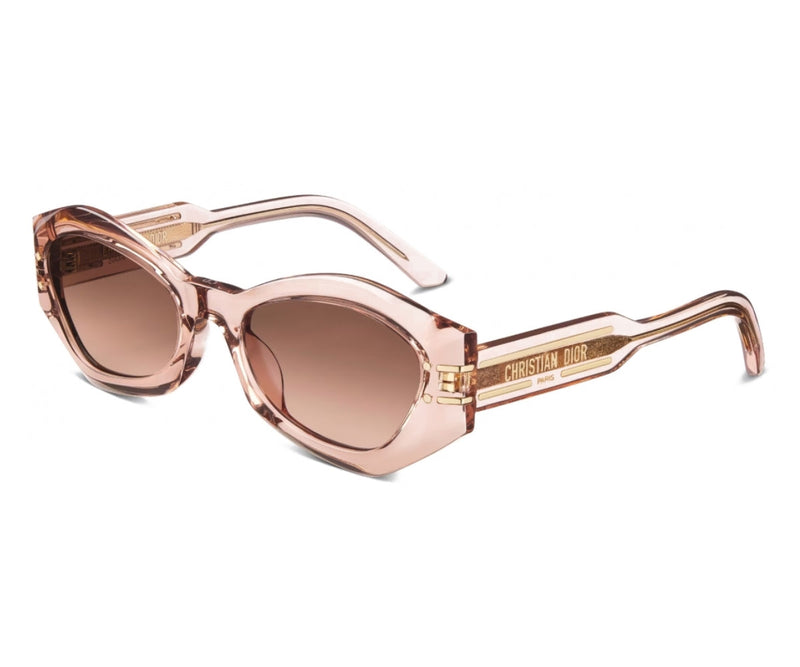 Elevate your style with the DiorSignature B1U sunglasses, a bold and modern statement from Dior’s iconic collection. Featuring an elegant butterfly shape, the crystal pink acetate frame plays with curves and volumes for a sophisticated, graphic touch. The gold-finish metal lines extend seamlessly from the temples to the front, enhancing the Christian Dior Paris signature for an unmistakable luxury appeal. The brown-to-pink gradient lenses provide UV protection while adding a soft, feminine allure. Designed for those who appreciate exclusivity and craftsmanship, these sunglasses are a must-have accessory that embodies Dior’s timeless elegance and contemporary flair.