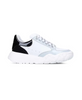 Elevate your style with Alexander McQueen Oversized Court Leather Sneakers in White/Black. These sneakers feature the brand's iconic chunky silhouette in a sporty-elegant design with contrasting lacquered accents. Made from smooth calf leather with perforated details for breathability, these sneakers stand out with their premium construction and contemporary chunky sole. The embossed logo and glossy heel insert add a sophisticated touch to this essential model. Perfect for casual, smart-casual, or urban-chic looks.