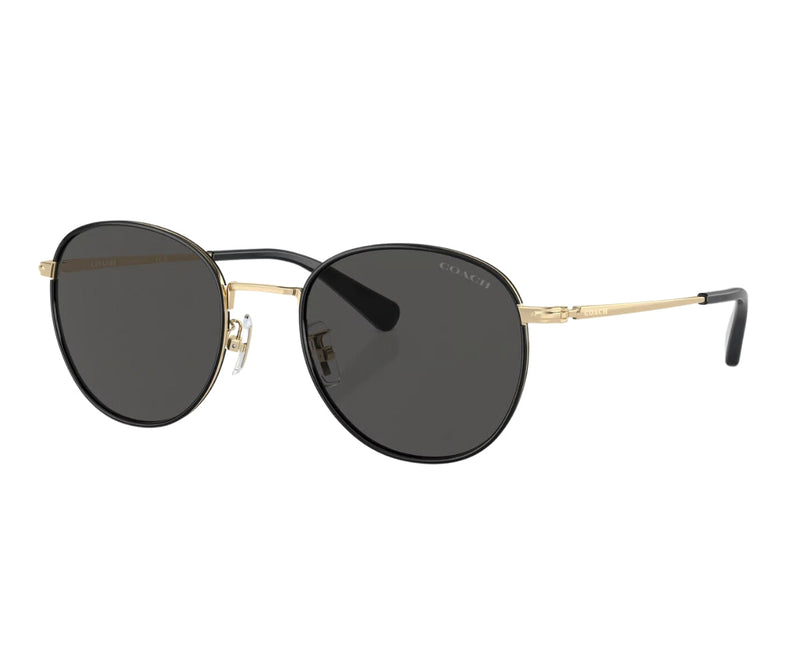 The COACH 7163 9346/87 sunglasses exude a refined, classic style with a modern edge. Featuring a sleek combination of shiny light gold and black in a metal frame, these sunglasses offer a luxurious yet understated look. The solid grey lenses provide optimal UV protection, making them a practical choice for sunny days. Their clean lines and classic shape create a timeless appeal, while the light gold accents add a touch of sophistication. With a durable metal construction, these sunglasses are both lightweight and resilient, ensuring comfort throughout the day. Perfect for any occasion, the COACH 7163 9346/87 is an ideal accessory for those who appreciate elegance and high-quality craftsmanship in their eyewear.