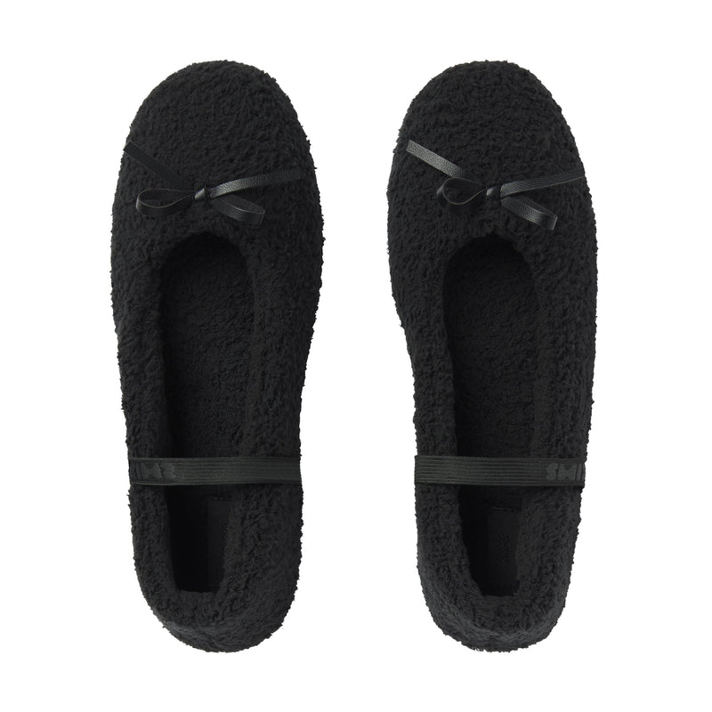 A ballerina-inspired indoor slipper with a sweet faux leather bow, elastic logo strap for a secure fit, and flexible sole for everyday wear. Made in a plush, cozy fabric, this shoe is finished with a logo label at the insole.