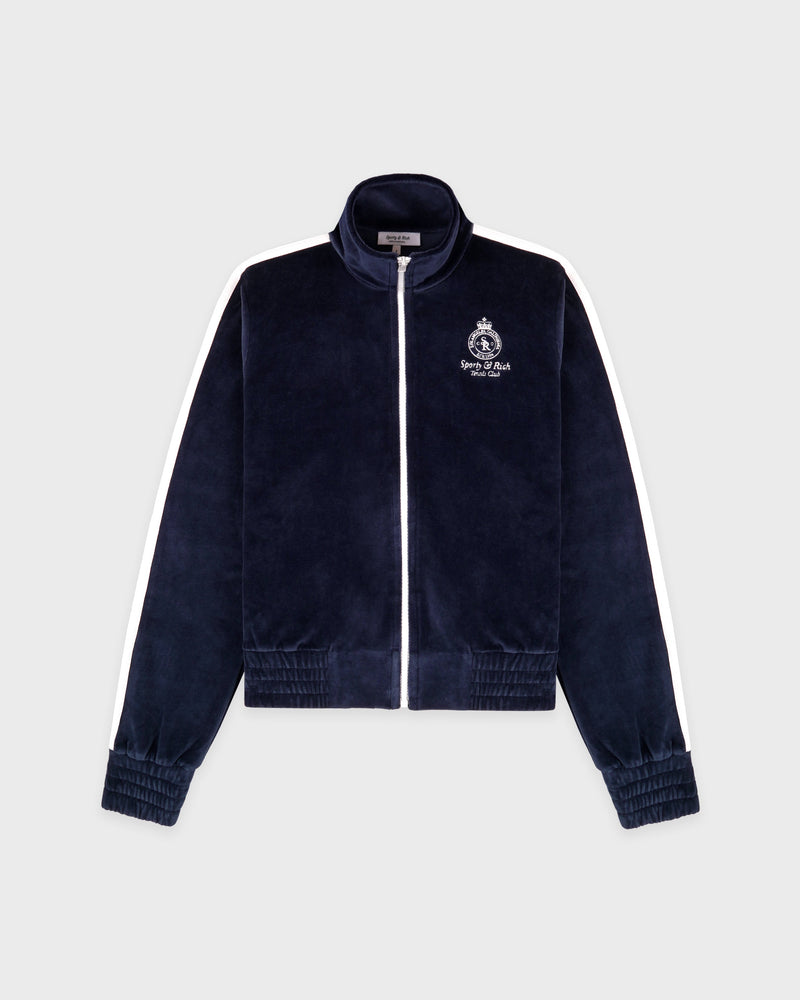 Crown Tennis Elio Velour Track Jacket - Navy/Ecru
