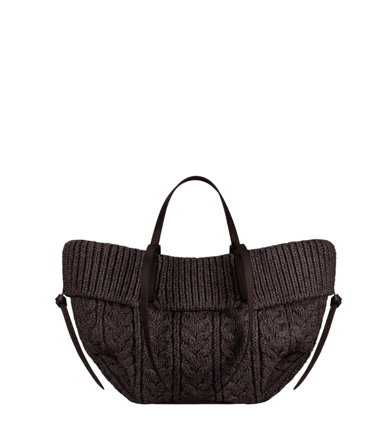 The comforting softness of merino wool enhances the sculptural lines of the Cyme Mini. A true feat of craftsmanship, the Merino Edition brings traditional knitting techniques to a leather goods design: fully fashioned knitting directly to form, ribbed trim inspired by ready-to-wear, and the horseshoe cable stitch. This winter reinterpretation explores the boundaries between different crafts.
