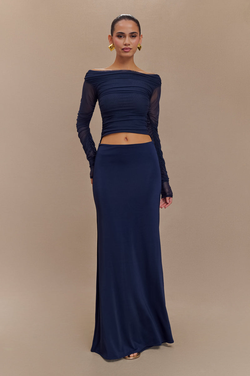 Darla Mesh And Slinky Off Shoulder Maxi Dress - Dark Navy