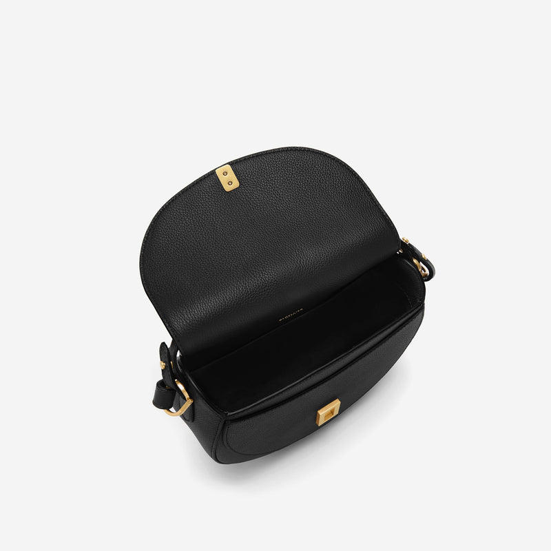 Refined versatility for the modern lifestyle. Softly curved, the silhouette is accentuated by exquisitely crafted leather detailing for a touch of femininity, finished with a brushed gold-plated magnetic padlock closure. Designed to effortlessly adapt to every occasion, the top handle and adjustable strap are both detachable, carry it handheld for a refined look or crossbody to go hands-free. Committed to exceptional craft, each piece is handmade using sustainably sourced LWG gold-rated Italian leather. With a sleek profile and a practical front pocket, it's the ideal style for life on the go. Interior: Main compartment, front pocket, interior slip pocket, cotton lining, foil embossed DeMellier logo. Exterior: Detachable top handle, detachable adjustable strap, bespoke d-rings, DeMellier Sam Browns, bombe leather trim, brushed gold-plated magnetic padlock closure, foil embossed DeMellier logo.