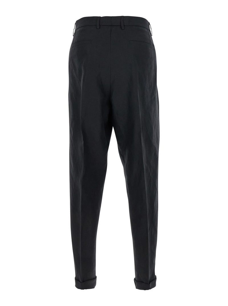 Dolce e gabbana Black Pants with Turn-Up Hem in Linen Man