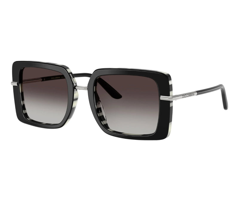 Make a bold style statement with the DOLCE & GABBANA 4491 3372/8G sunglasses. Featuring a striking square shape, this frame comes in classic black with a playful inner zebra print, blending elegance with a touch of wild charm. Crafted from a premium combination of materials, it ensures both durability and comfort. The grey gradient lenses provide stylish sun protection with smooth visual transition, ideal for everyday wear. Offering only UV protection, these sunglasses are perfect for those who love classic silhouettes with a unique twist. With signature Dolce & Gabbana flair, this pair adds a fashionable edge to any outfit while maintaining timeless appeal.