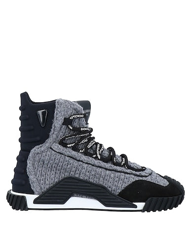 high-top trainers, knitted, suede, two-tone, brand logo, leather lining, lace-up, round toe, rubber sole, contains non-textile parts of animal origin