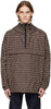 Long sleeve technical satin jacket in brown featuring logo graphic pattern in black, grey and off-white.
