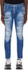 Slim-fit stretch cotton-blend denim jeans. Fading, whiskering, distressing, and paint splatter effect throughout.