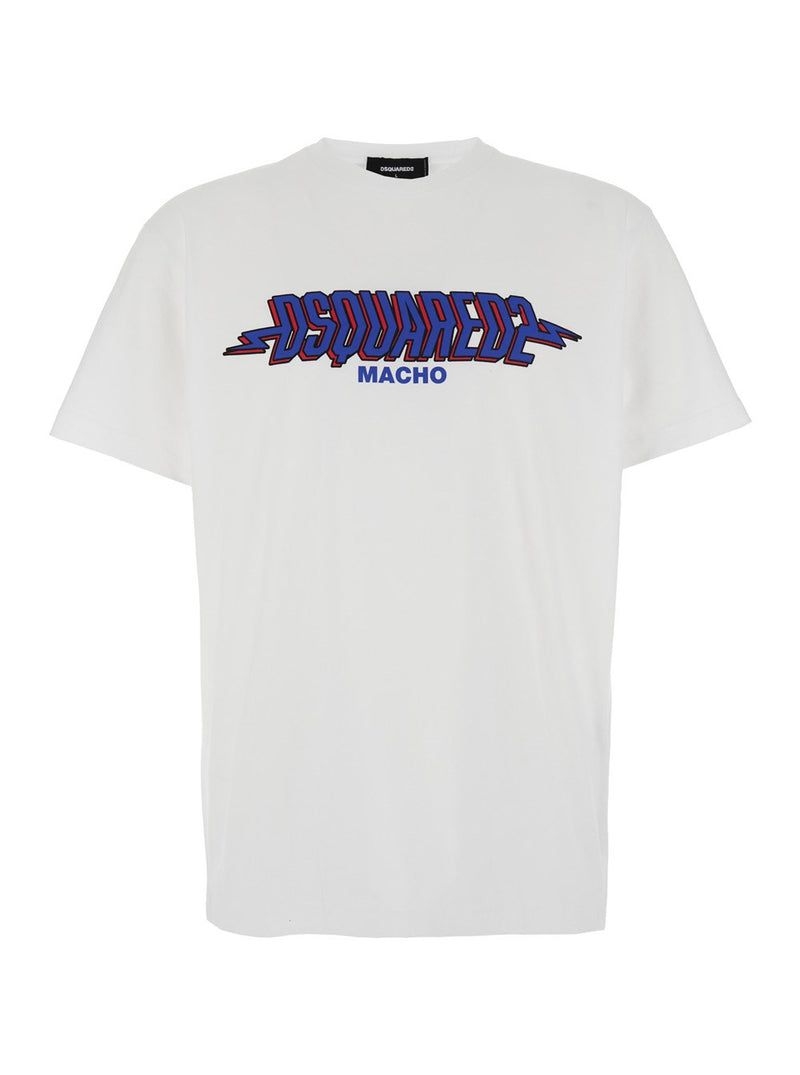Dsquared2 White Crewneck T-Shirt with Logo Print on the Front in Cotton Man