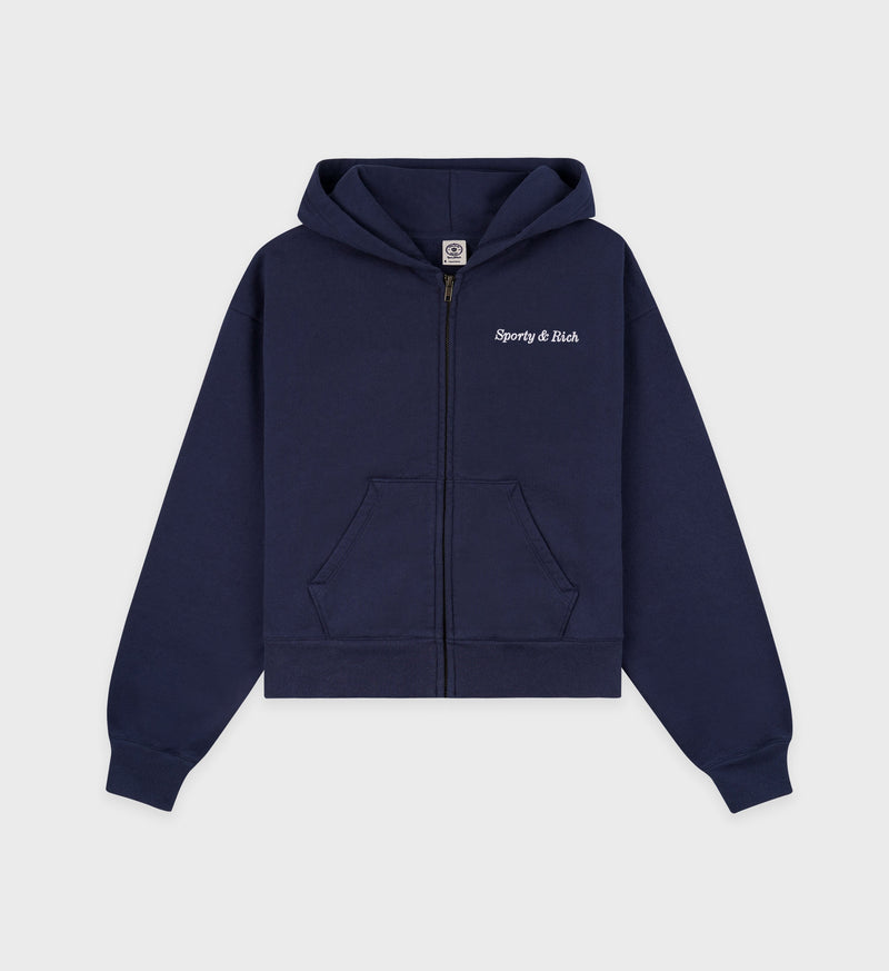 Eden Crest Cropped Zip Hoodie - Navy/White