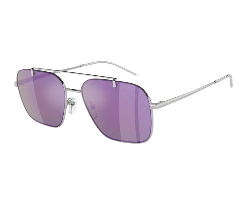 Metal sunglasses for men, with a modern design on square construction with geometric shaping and a double bridge. Thin metal temples and laser-engraved Emporia Armani logo. Featuring nose pads with metal base for added comfort. Asian friendly.