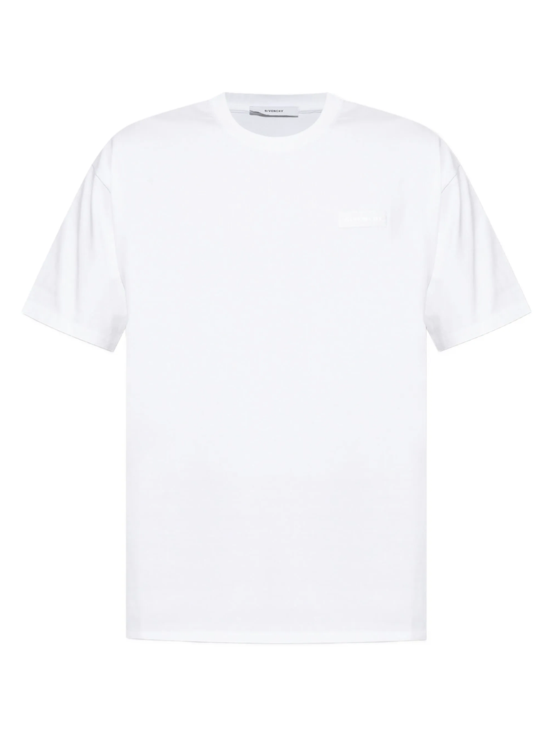 This Givenchy Logo Patch T-Shirt in White features a comfortable regular fit and a classic crew neck design. Crafted from soft cotton, it ensures breathable wear, while the grosgrain patch displaying the iconic GIVENCHY signature with distinctive zigzag seams adds a refined touch to the chest. Ideal for elevating casual looks with understated luxury.