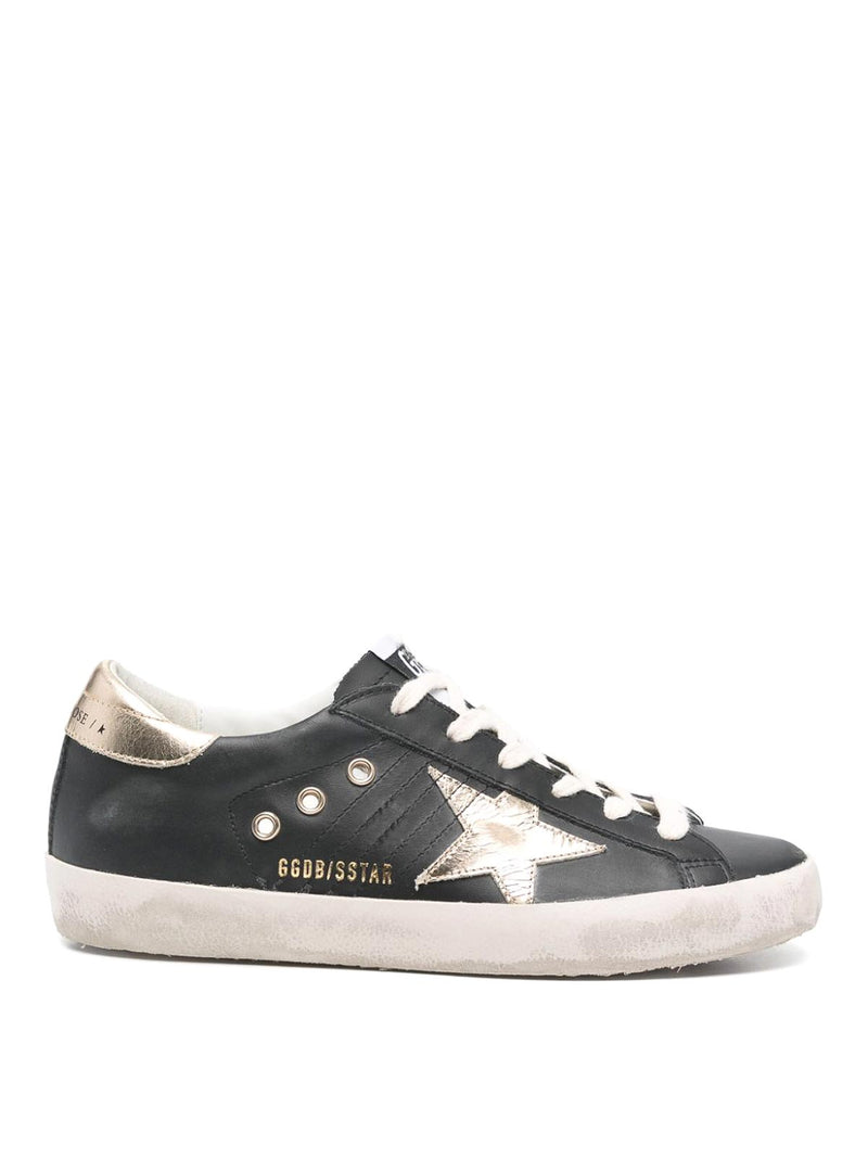 The Golden Goose Black and Gold Star Sneakers offer a perfect blend of bold design and luxury street style. Crafted from premium black leather, these sneakers are accentuated with a metallic gold star on the side, adding a striking touch of glamour. The gold leather heel tab, signature stud details, and distressed sole contribute to their signature worn-in aesthetic, ensuring both comfort and unique style. These sneakers are perfect for adding a chic, casual edge to any outfit.