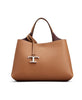 Grained Leather Tote Bag with Logo Pendant