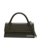 Elevate your style with this dark khaki calf leather handbag from Jacquemus. Featuring a silver-tone logo plaque and stitch detailing, this handbag is perfect for the modern woman. Dimensions: DEPTH - 6.0 cm, HANDLE - 8.0 cm, HEIGHT - 10.0 cm, WIDTH - 22.0 cm.