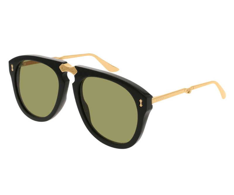 Fold up aviator shape where rivets are both decorative and functional elements​. Bold acetate front in contrast with the subtle metal temples​. Genderless color palette​