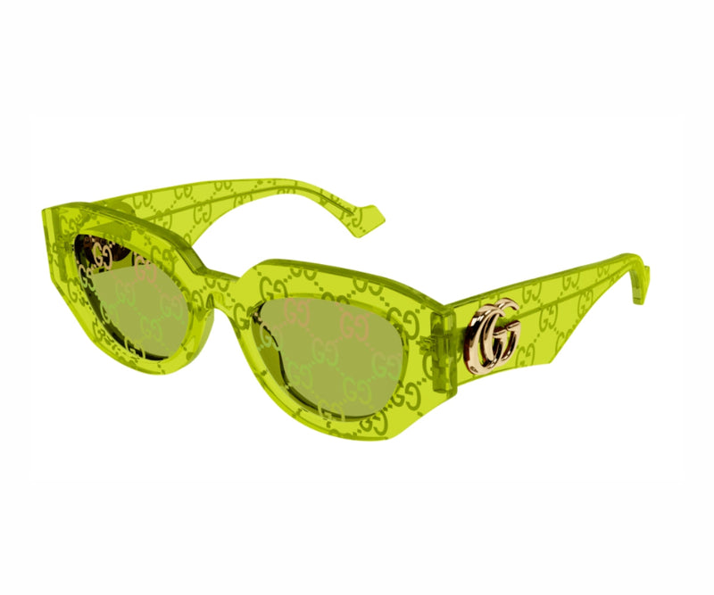 Introducing the GUCCI 1421S 007 sunglasses – a bold statement in luxury eyewear. Featuring a striking neon green acetate frame adorned with the iconic Gucci monogram, this classic cat-eye design blends retro flair with modern elegance. The solid green lenses offer UV protection, ensuring both style and safety. Crafted from high-quality acetate, these sunglasses are lightweight yet durable, making them perfect for everyday wear. The signature gold double-G logo on the temples adds a distinctive touch of sophistication. Designed for those who dare to stand out, the GUCCI 1421S 007 combines iconic branding with timeless style in a fresh, vibrant colorway. Perfect for fashion-forward individuals seeking both glamour and functionality.