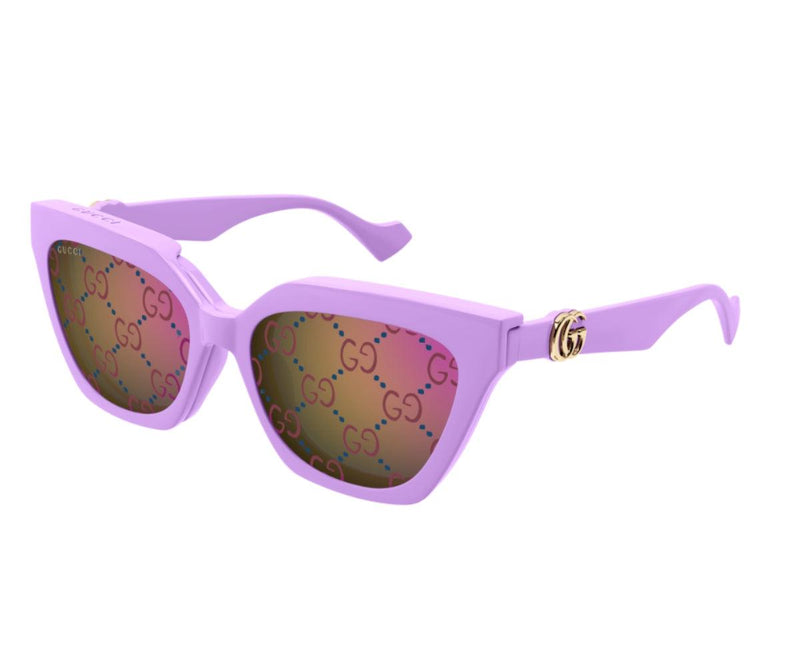 Pared-back simplicity characterizes the essential shapes, lines and colours of this concept, for a cool and on-trend mood. Inspired by a gender fluid look, translated in a street style effortless look. Narrow cat eye light acetate shape. Gucci lettering logo lasered on the clip on visible from the top view and GG interlocking logo tridimensional on the light acetate temple.