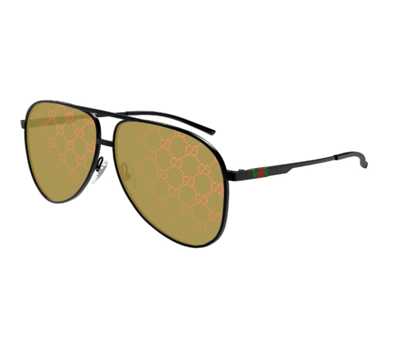 The GUCCI 1677S 005 sunglasses are a striking blend of classic elegance and bold details. The sleek black metal frames exude sophistication, while their lightweight design ensures lasting comfort. The standout feature is the yellow mirrored lenses, adorned with the iconic GUCCI monogram, adding a luxurious and distinctive touch. These lenses not only elevate the style but also provide essential UV protection, keeping your eyes safe from harmful rays. Perfect for those who appreciate high-fashion eyewear with unique accents, the GUCCI 1677S 005 sunglasses seamlessly combine timeless design with modern flair, making them an ideal accessory for any occasion.