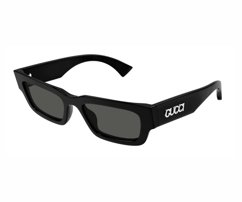 The Gucci 1838S 001 sunglasses bring together bold design and timeless elegance. Crafted with a sleek black acetate frame, these rectangular sunglasses offer a sharp, classic look suitable for any occasion. The solid grey lenses provide reliable UV protection, ensuring your eyes are shielded in style. Designed for those who appreciate a clean and confident aesthetic, this model features subtle Gucci branding on the temples for a refined luxury finish. The durable acetate material ensures a comfortable and secure fit, perfect for daily wear. Whether dressing up or going casual, the Gucci 1838S 001 adds a touch of sophistication and modern edge to any outfit, making it a staple accessory in any wardrobe.