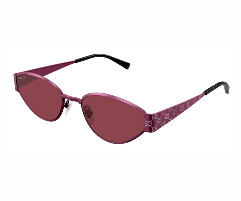 The Gucci 1853S 004 sunglasses offer a chic blend of elegance and charm. Designed with a soft oval shape, the slim pink metal frame adds a touch of femininity and modern flair. The solid burgundy lenses provide reliable UV protection while enhancing the overall sophisticated look. Lightweight and stylish, these sunglasses are perfect for those who appreciate a classic design with a fresh, contemporary twist. Whether for a sunny stroll or a fashionable outing, the 1853S 004 combines comfort, durability, and iconic Gucci craftsmanship. This pair is ideal for anyone seeking a graceful and stylish accessory that stands out with subtle luxury.