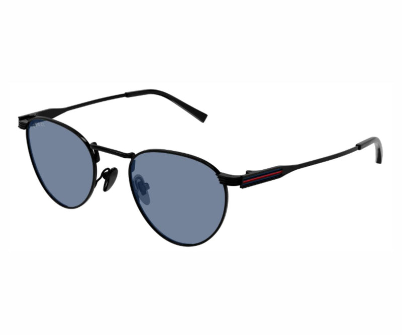 GUCCI 1875S 004 sunglasses offer a bold interpretation of the classic aviator style. Crafted from high-quality metal, the black frame delivers a sleek and modern edge while remaining lightweight and comfortable. The solid blue lenses provide reliable UV protection, helping shield your eyes from harmful sunlight with stylish appeal. Designed for versatility, this timeless silhouette pairs effortlessly with both casual and refined outfits. Finished with GUCCI’s signature craftsmanship, these sunglasses combine functionality and elegance, making them a standout addition to any eyewear collection.