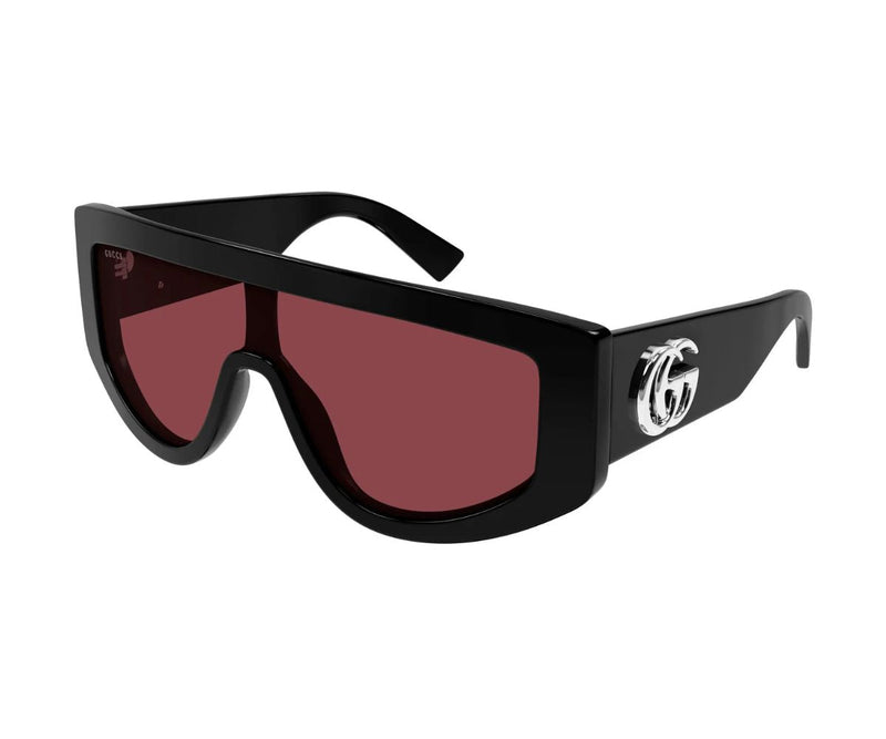 Make a bold fashion statement with the Gucci 1950S 002 sunglasses. Designed in an oversized mask shape, this striking style features a sleek black acetate frame that delivers a powerful, modern look. The vibrant red solid lenses add dramatic contrast while providing essential UV protection for comfortable outdoor wear. Crafted from premium acetate, these sunglasses offer durability, a smooth finish, and a confident fit. Perfect for trendsetters who love standout accessories, this design effortlessly combines Gucci’s signature luxury with contemporary edge, elevating both casual and fashion-forward outfits.