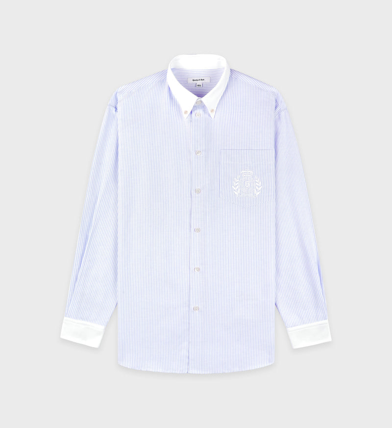 H&W Crest Oversized Oxford Shirt - Blue/White Thin Stripe