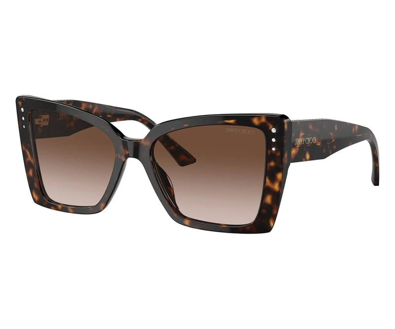 The JIMMY CHOO 5001B 5002/13 sunglasses blend luxury with a classic style, making them a sophisticated choice for any occasion. The frame, crafted from high-quality acetate in a rich Havana Brown hue, exudes timeless elegance. Paired with brown gradient lenses, these sunglasses offer a chic look while providing UV protection to shield your eyes from harmful rays. The gradient lens design transitions smoothly from dark to light, adding depth to the style and ensuring comfort in various lighting conditions. With their classic shape and luxurious details, the JIMMY CHOO 5001B 5002/13 sunglasses are a perfect accessory for those seeking a touch of glamour in everyday eyewear.
