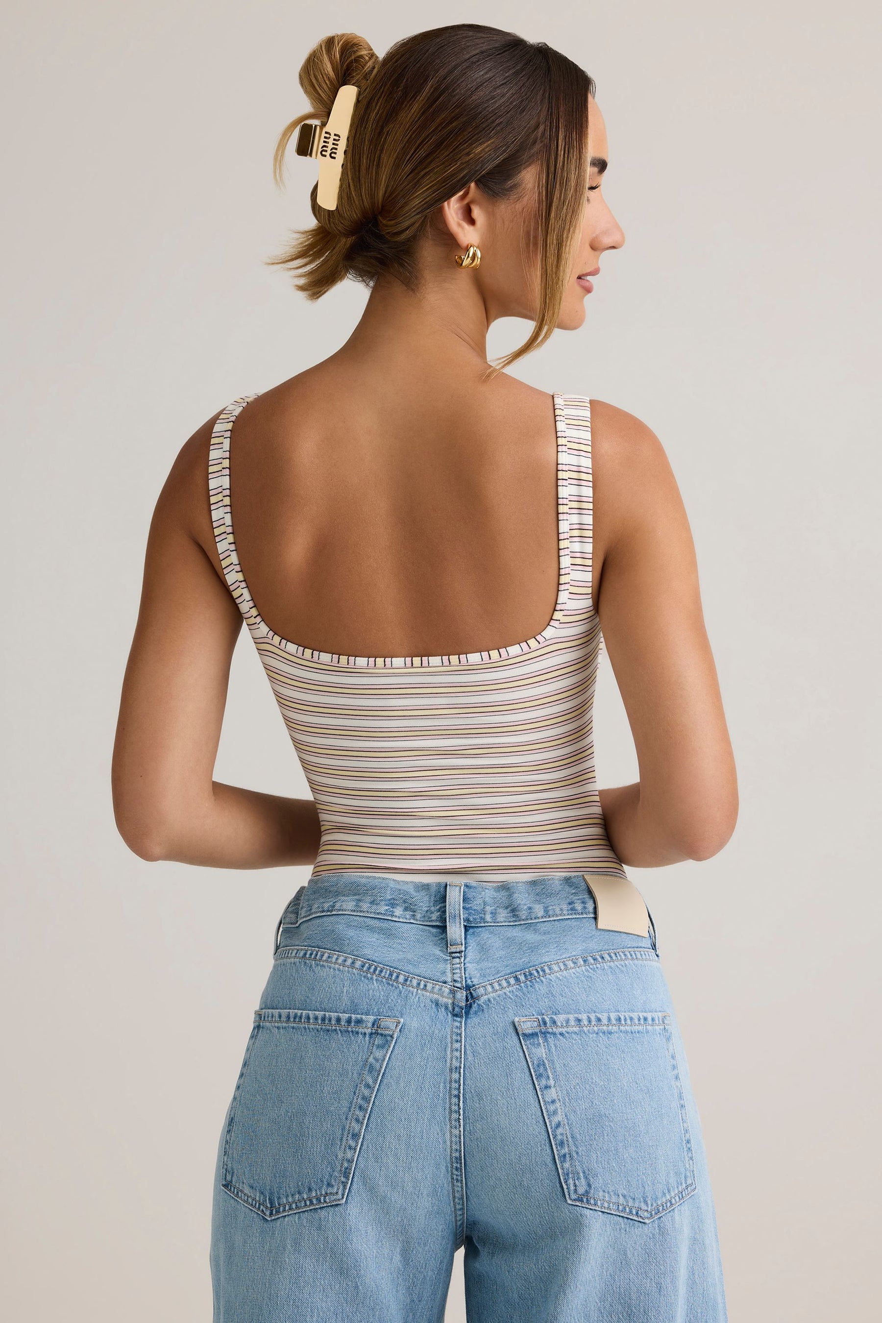 Modal Square-Neck Bodysuit in Pink Yellow Stripe