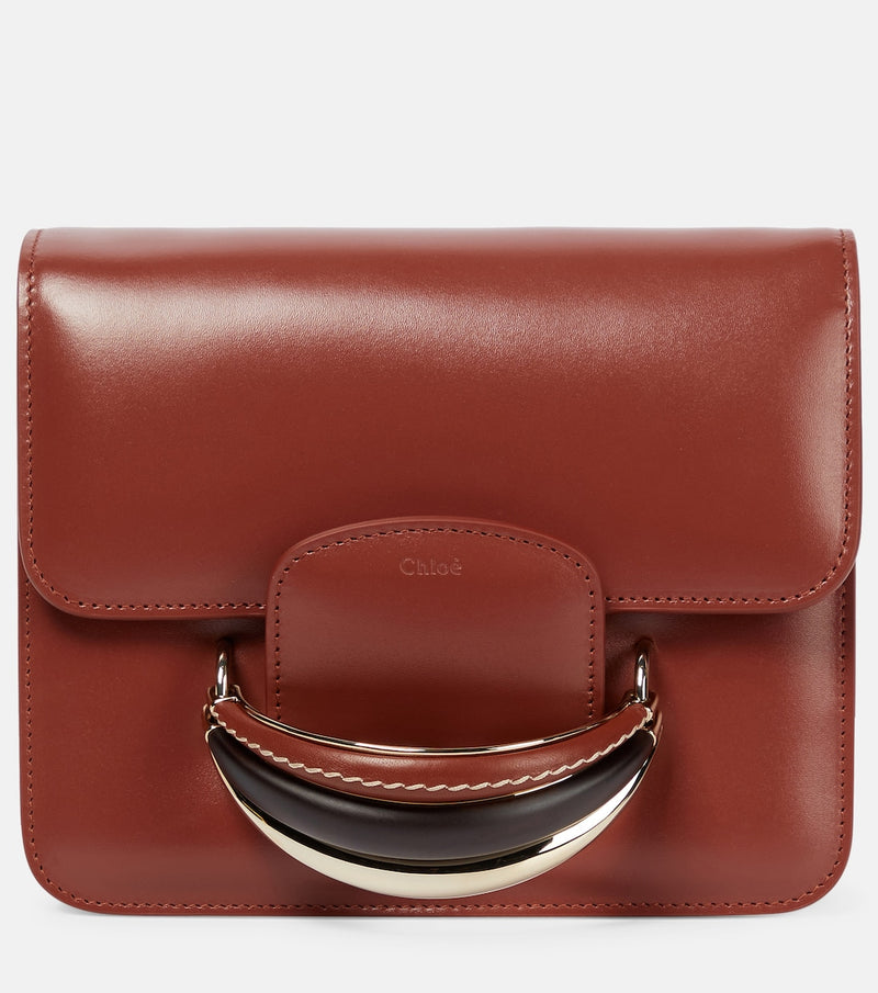 Chloé's Kattie Small shoulder bag doubles as a clutch for versatile styling. It's made from dark brown coated semi-aniline leather, and features a trio of bracelet handles made from brass, wood and leather.