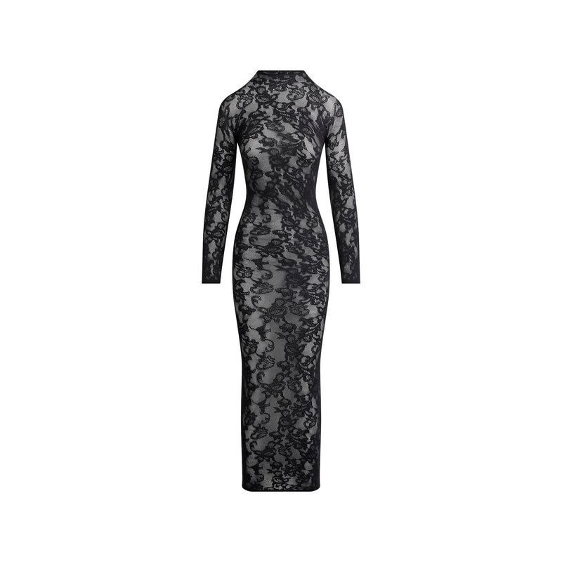 KNIT LACE MOCK NECK LONG DRESS | OBSIDIAN