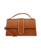 Jacquemus Le Grand Bambino Bag is a compact top-handle leather bag designed to carry essentials for short outings. Its removable, adjustable crossbody strap and magnetic flap make it a versatile option for day-to-night wear. Key attributes: Brown | Light brown | Calf leather | Top handle | Adjustable and removable crossbody strap | Magnetic flap closure | Rear exterior slot pocket | Interior slot pocket | Rectangular silhouette | Flap front | Half-round top handle | Metal logo lettering on front | Dimensions & fit: Width 23.5 cm | Height 13 cm | Depth 7 cm | One size | Composition & care: 100% calf leather | 100% cotton lining