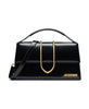 Jacquemus Le Grand Bambino La Croisière Bag is a compact, structured shoulder bag designed for carrying essentials. It stands out for its magnetic flap and polished metal detailing that combine style with everyday practicality. Key attributes: Black | Calf leather | Magnetic flap closure | Removable and adjustable long strap | Padded top handle | Back slip pocket | Interior card holder pouch | Metal engraved lobster clips | Gold metal logo and hardware | Structured metal detail on flap | Brushed and glossy calf leather finish | Topstitched details | Dimensions & fit: 23.5 cm x 13 cm x 7 cm | Composition & care: 100% calfskin (body) | Lining: 100% cotton | Avoid direct exposure to light and contact with cosmetics, water or heat. Store in the dust bag in a dry place.