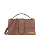 Elevate your style with the Jacquemus Le Grand Bambino Shoulder Bag. Crafted from luxurious leather with a canvas lining, this bag features a flap top with magnetic closure, a single top handle, and a removable, adjustable shoulder strap. Adorned with front logo lettering, this sophisticated dark brown bag is designed for women. Made in Italy. Dimensions: 14 cm x 24 cm x 7 cm.