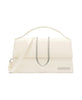 Elevate your style with the Jacquemus Le Grand Bambino Shoulder Bag in light ivory. This female handbag features a magnetic flap closure, top handle, and adjustable shoulder strap. Crafted from 100% calf leather, it combines style with functionality. Dimensions: 14 cm height, 24 cm length, 7 cm width.