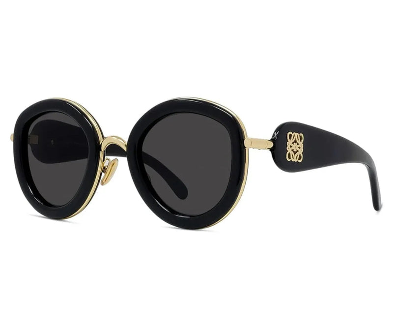 The LOEWE 40130U 01A sunglasses are the epitome of sleek, modern style. Featuring a bold black acetate frame, these sunglasses combine high-fashion with a trendy edge, making them perfect for those who love to stand out. The solid grey lenses offer a sharp contrast to the frame, providing a chic look while ensuring clear vision and comfort. Designed with premium materials, these sunglasses are both durable and lightweight, ideal for everyday wear. Whether you're dressing up or going casual, the 40130U 01A model adds a touch of sophistication to any outfit, making it a must-have accessory for the fashion-forward individual.