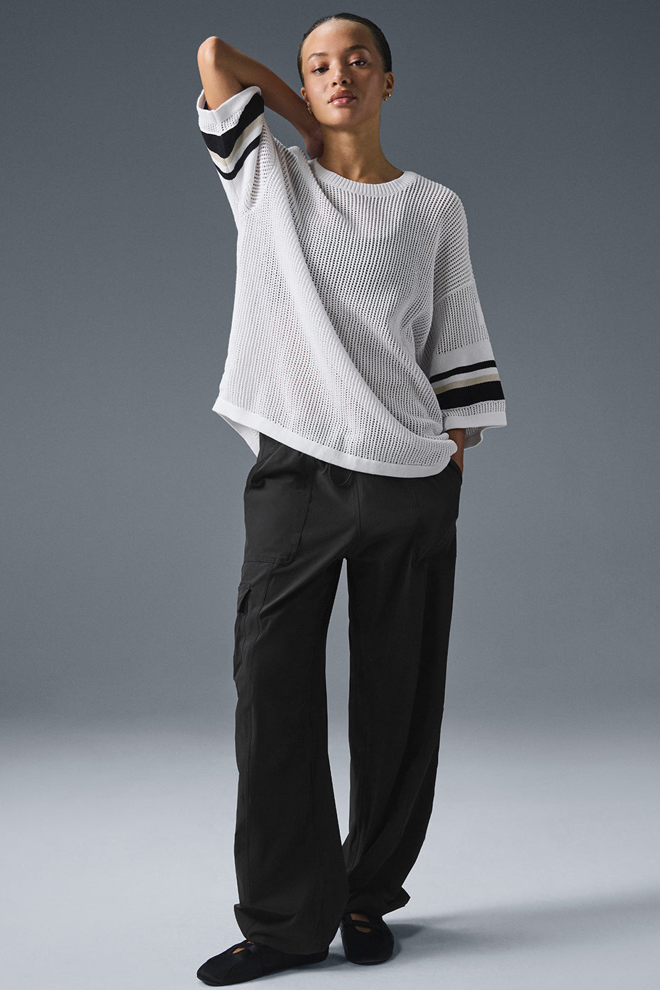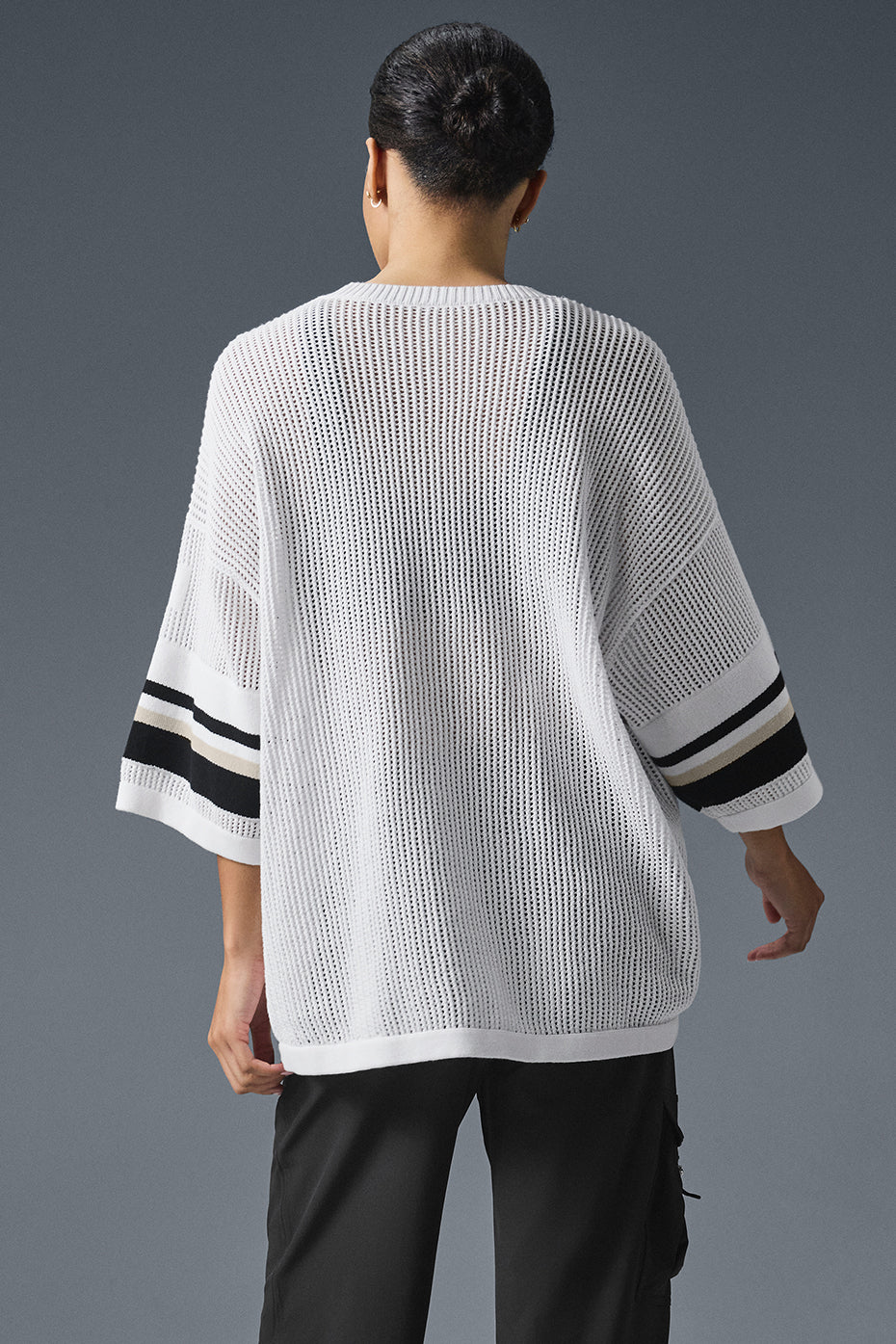 Soft, sleek, and wildly versatile, this jersey is designed for styling up on your days off. The wide, exaggerated arms give it a boxy look, while the open-knit weave keeps it cool.