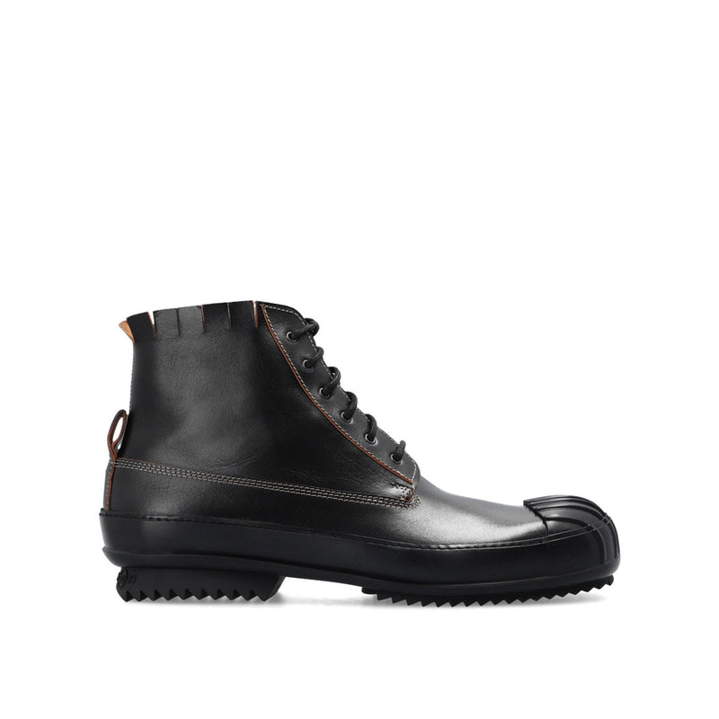 - Composition: 100% calf leather - Inner: Leather - Insole: Leather - Sole: Rubber - pull tab at the rear - Round toe - Front lace-up closure - Embossed logo detail - Finished with slits - Made in Italy -