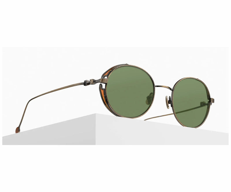 The MATSUDA M3152 Antique Gold sunglasses showcase a refined round silhouette, embodying timeless elegance with a contemporary edge. Crafted from premium titanium, the antique gold frame offers a lightweight yet durable structure, ensuring all-day comfort and sophisticated appeal. The sage green solid lenses not only enhance the classic aesthetic but also provide essential UV protection. Perfect for those who appreciate subtle luxury and meticulous craftsmanship, this model delivers understated style with vintage-inspired detailing. Ideal for both everyday wear and elevated occasions, the M3152 is a distinctive piece that seamlessly blends tradition with modern design.