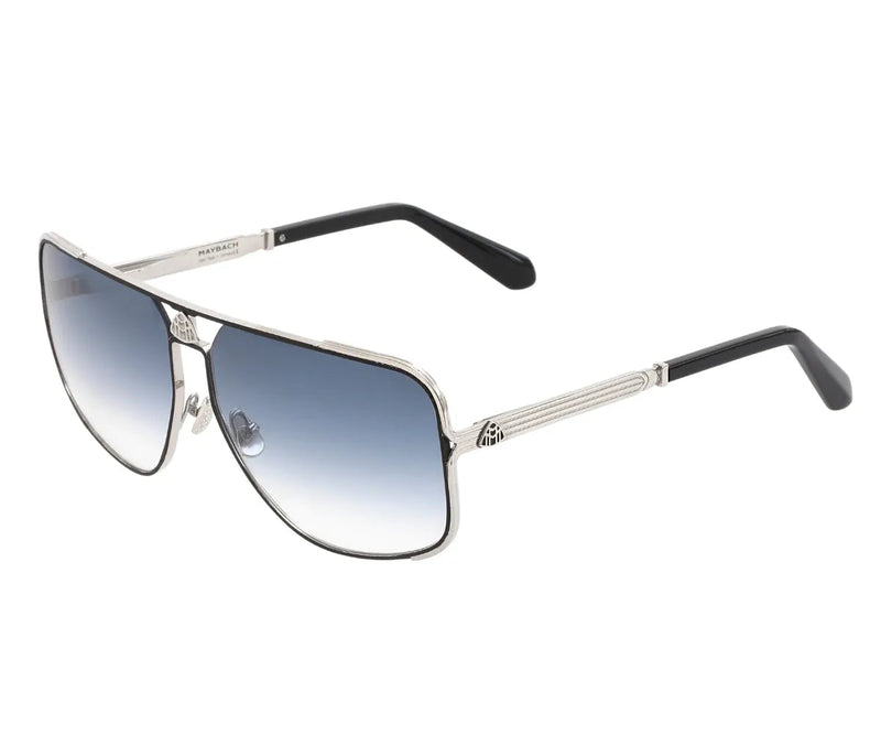 The MAYBACH "THE PRESENTER I PA/B-AB-Z60" sunglasses are a stunning blend of exclusivity and refined craftsmanship. This model features a palladium-plated frame with sleek black lacquer detailing, creating a sophisticated and modern look. Constructed from premium titanium, the frame is lightweight yet durable, offering long-lasting comfort. The blue and grey gradient lenses not only add a stylish touch but also provide essential UV protection, keeping your eyes safe from harmful rays. Designed for those who value luxury and impeccable design, these sunglasses are the perfect accessory for making a bold, yet elegant statement.