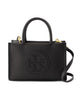 Elevate your style with this versatile Tory Burch handbag in classic black. Made of synthetic leather with a luxurious leather lining, this bag features two top handles for easy carrying and a tab with snap fastener closure. The interior offers two compartments and two zipped pockets to keep your essentials organized. Perfect for the modern woman on the go. Height: 12.5 cm, Length: 7 cm.