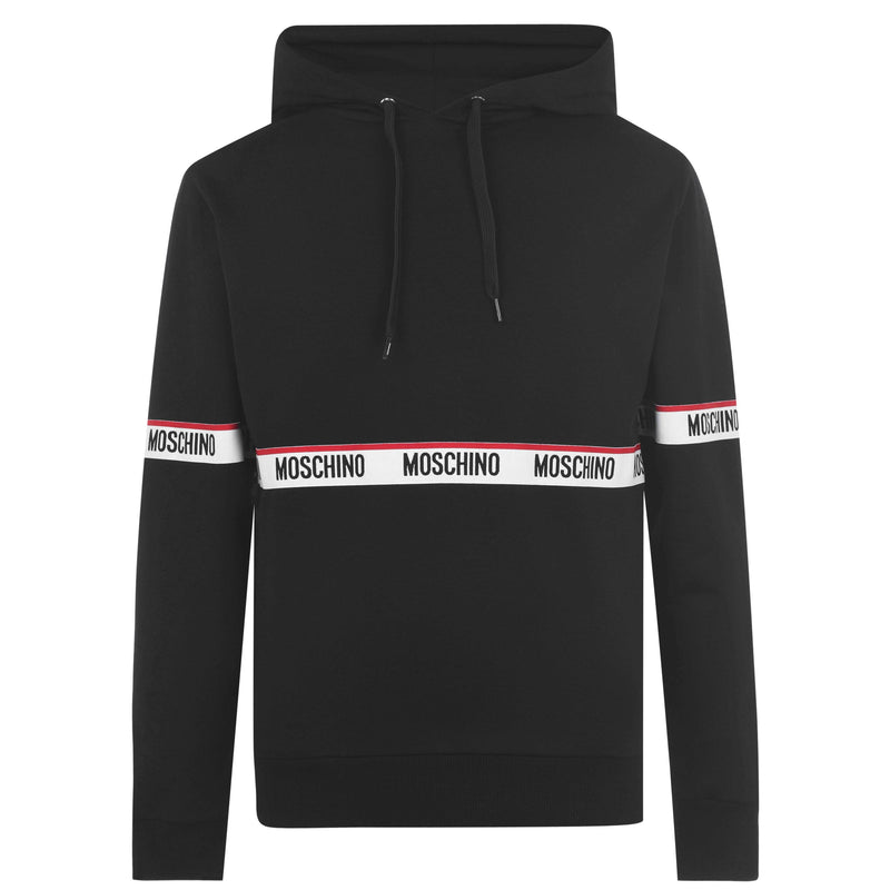 Combine style and comfort with this Tape OTH Hoodie from **Moschino**. Crafted in a soft cotton mix fabric, this hoodie is constructed in a pullover style and features an adjustable drawstring hood with long sleeves, two open hand pockets, a straight hemline and ribbed trims to the cuffs and hem for a comfortable wear. The look is finished with the brand's logo in a tape design all the way round the body and sleeves for brand recognition. Style yours with joggers and chunky trainers for a casual styling. Machine washable at 30 degrees.