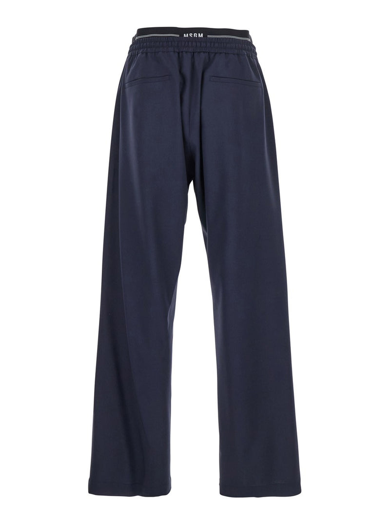 Msgm Blue Pants with Logo Band and Drawstring Waist in Cotton Man